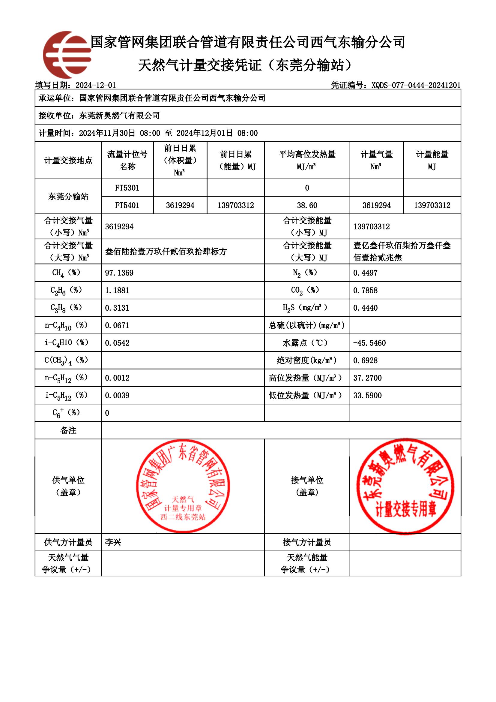 東莞新奧燃氣2024年12月份供氣質量檢查報告公示