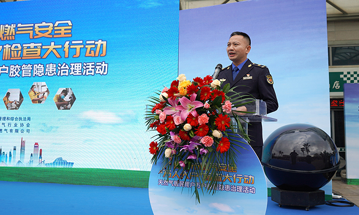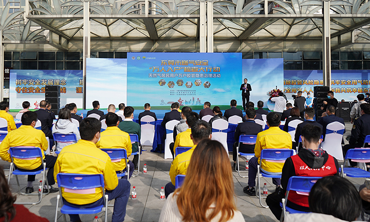 為進一步保障廣大市民安全用氣,1月25日,由東莞市城市管理和綜合執法局主辦,東莞市燃氣行業協會協辦,東莞新奧承辦的東莞市燃氣安全“萬人入戶”檢查大行動居民用戶膠管隱患治理活動在萬江天邑灣廣場啟動。市城市管理綜合執法局局長劉永定、黨組成員林劍雄,萬江街道辦事處主任黃冠煊、黨工委委員劉雄波,東城、南城、莞城、萬江等城管分局負責人,燃氣行業協會負責人,物業企業代表,公司一號位魯統山、安全理正李明華及相關安全人員參加啟動儀式和當天入戶安檢活動。
