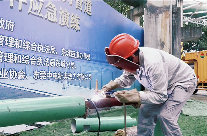 本次事故模擬某路段貨車倒車時碰撞到熱力主管道,導致蒸汽泄漏。東莞中電新奧熱力有限公司接報后立即啟動企業一級應急響應,并逐級上報組織各應急小組前往現場搶險。演練過程緊張有序,險情信息傳遞、現場警戒控制、管道泄壓修復等環節一氣呵成,最終順利完成管道搶修恢復供汽。這也是首次開展熱力突發事件應急救援演練,有效檢驗了企業突發事件響應流程與政企之間應急聯動機制,為東莞市集中供熱應急處置起到良好的示范作用。