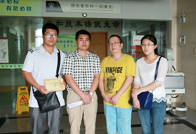 同時(shí),廣東省江西上猶商會(huì)在得知此事后,會(huì)長(zhǎng)劉易文指示秘書處組織、發(fā)起愛心捐款活動(dòng)。上猶商會(huì)各理事會(huì)員積極響應(yīng)捐款,短短幾天時(shí)間已籌集善款三萬多元。2014年6月10日下午,商會(huì)常務(wù)副會(huì)長(zhǎng)賴厚平及商會(huì)秘書處組織副會(huì)長(zhǎng)朱復(fù)郴、秘書孔凡順及博皓公司代表組成3人探訪團(tuán),親到廣州紅十字會(huì)醫(yī)院探望李明亮夫婦,并送上了這筆愛心捐款。副會(huì)長(zhǎng)朱復(fù)郴慰問了患者并詳細(xì)詢問了其家屬情況,對(duì)其籌款近況提出了相應(yīng)的建議,同時(shí)鼓勵(lì)李劍、李婷面對(duì)困難要堅(jiān)強(qiáng)。李劍,李婷及其家屬對(duì)商會(huì)代表的到訪和愛心捐助表示衷心感謝!